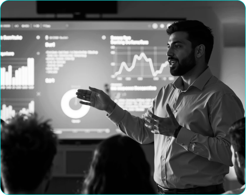 Mais desempenho, menos achismo. Gestão baseada em dados e resultados. Implementamos sistemas e rotinas de controle para sua equipe comercial, com foco em metas, produtividade e crescimento sustentável. Estruturamos KPIs, OKRs e métricas estratégicas que permitem acompanhar a performance de vendas em tempo real e tomar decisões com base em dados concretos. Com nossos modelos de gestão, sua equipe trabalha com foco, clareza e alto rendimento.